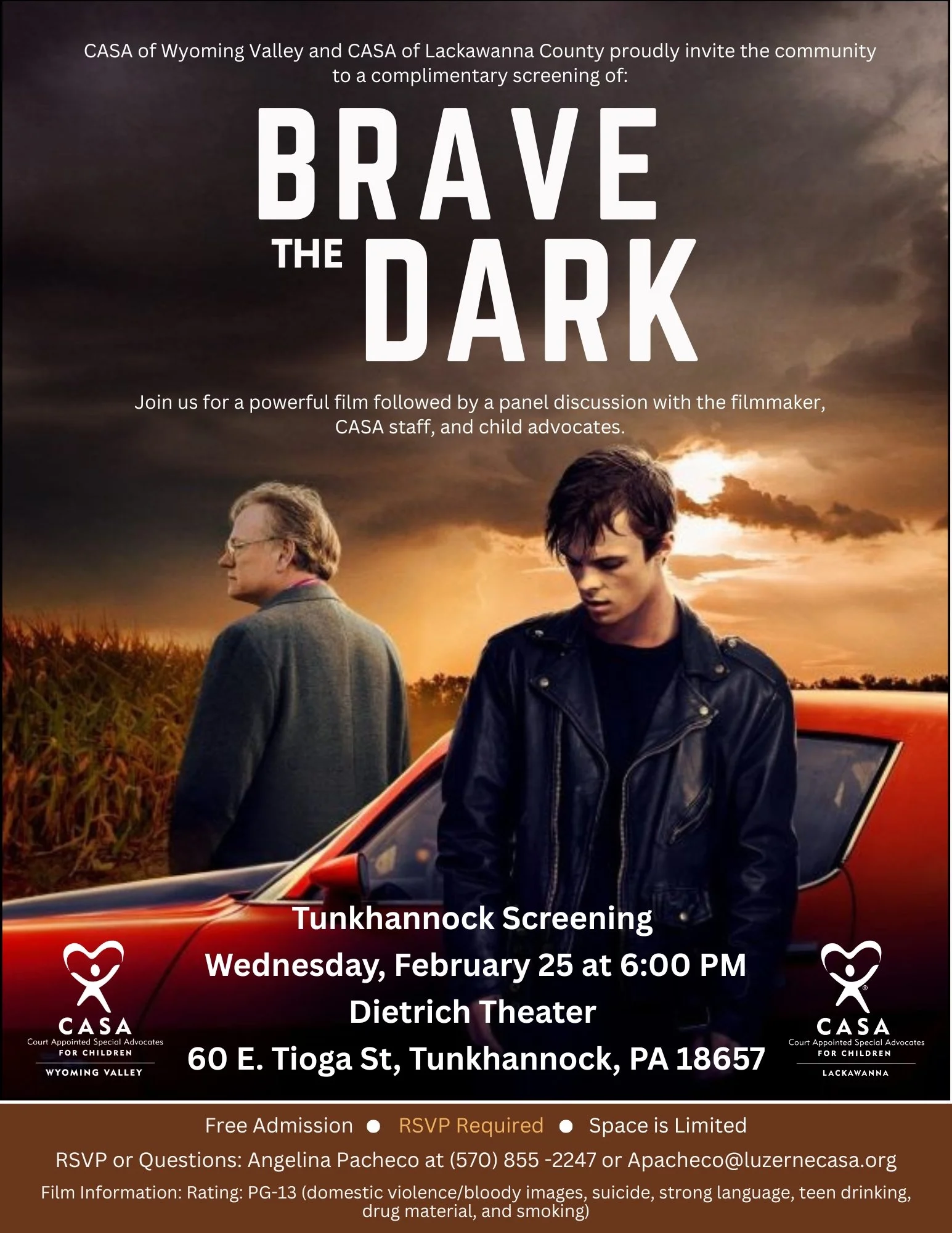 CASA of Wyoming Valley proudly invites the community to two complimentary screenings of Brave the Dark, a powerful and heartfelt film based on a true story of resilience, compassion, and hope.